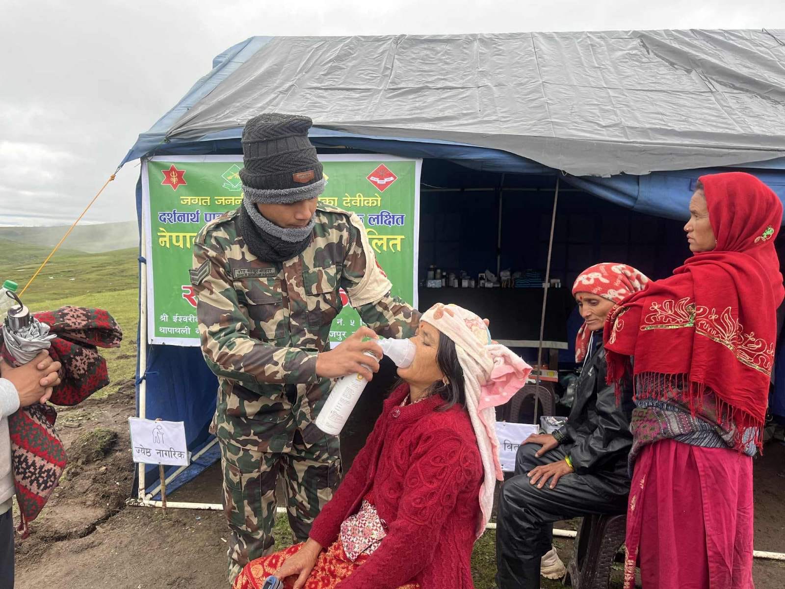 बागलुङ ढोरपाटनस्थित दुर्गा भञ्जन गुल्मबाट ढोरबराह क्षेत्रमा ४१७ जना तथा ओखलढुङ्गास्थित दुर्गाबक्स गणबाट सोलु दूधकुण्डमा ३५६ तीर्थयात्रीलाई स्वास्थ्य सेवा उपलब्ध गराइएको पनि सेनाले जानकारी दिएको छ ।