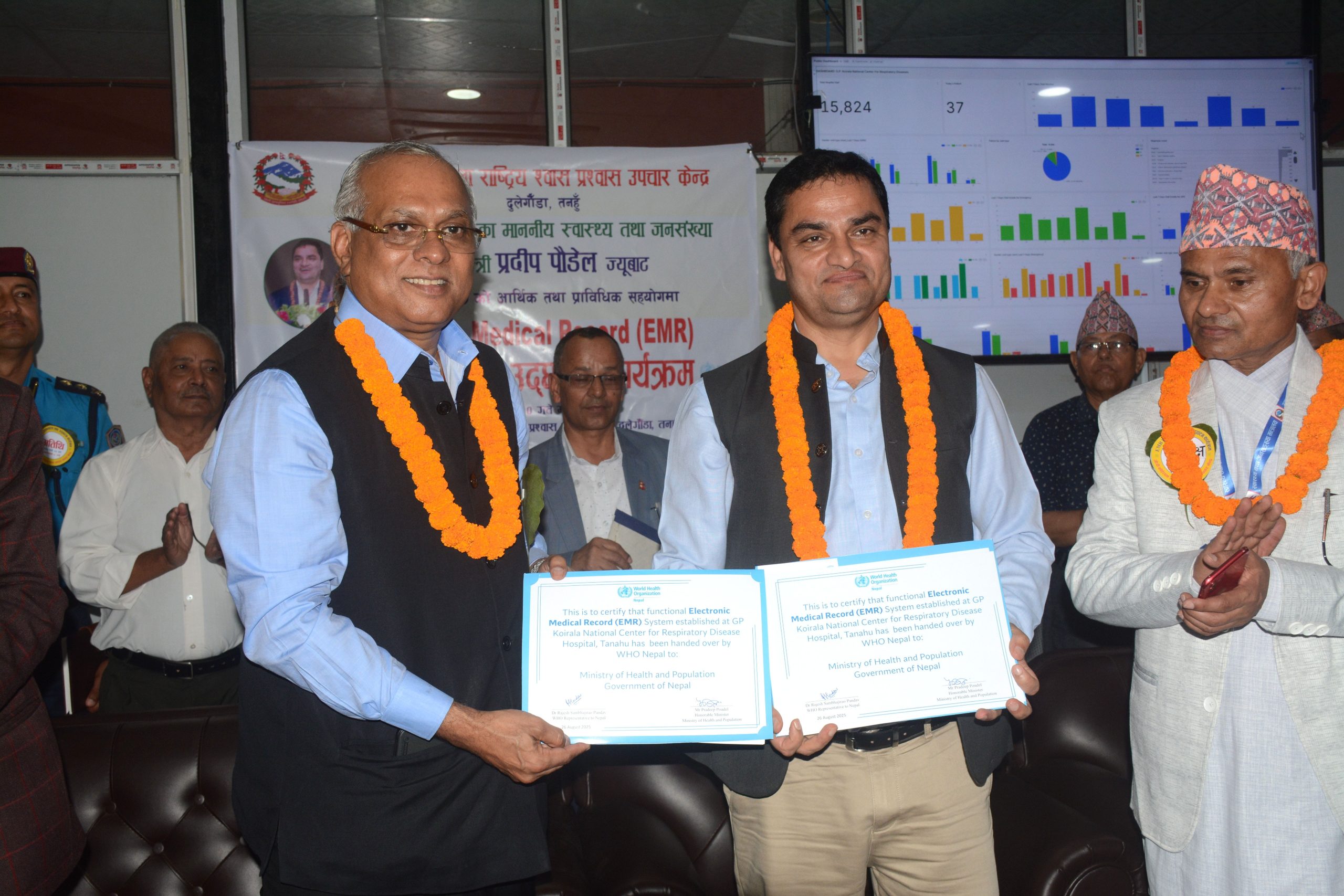 ११ भदौ, दमौली (तनहुँ) । स्वास्थ्य तथा जनसङ्ख्यामन्त्री प्रदीप पौडेलले शुक्लागण्डकी नगरपालिका–५ बेलचौतारास्थित जिपी कोइराला श्वासप्रश्वास उपचार केन्द्रमा विद्युतीय चिकित्सा प्रणाली (इएमआर)को शुभारम्भ गर्नुभएको छ । अस्पतालमा आज आयोजित कार्यक्रममा उहाँले यो सेवा आरम्भ गर्नुभएको हो ।