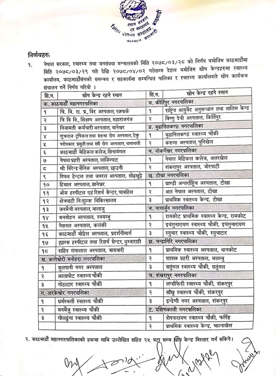 काठमाडौं महानगरका खोप केन्द्रहरुः