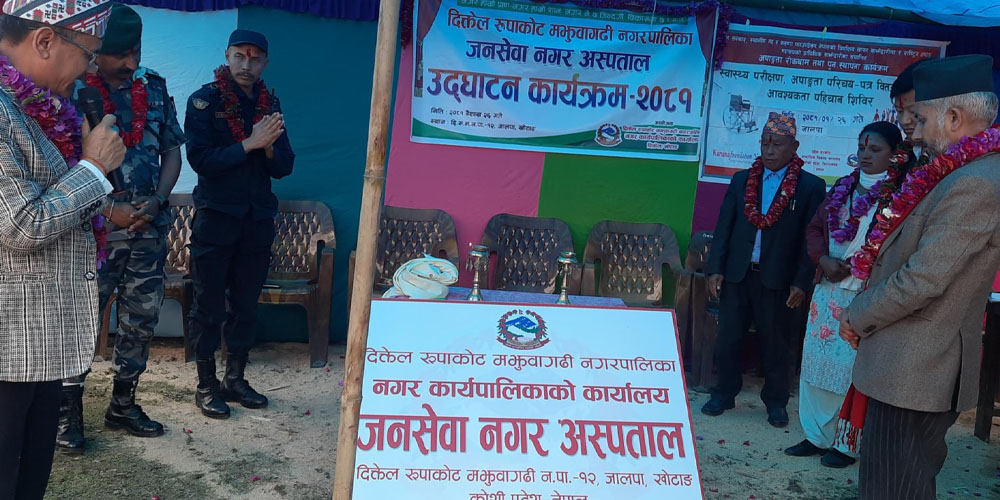निकट भविष्यमा १५ शय्यामा स्तरोन्नति गर्नेगरी स्थापना गरिएको नगर अस्पतालको उद्घाटन पूर्वसांसद टङ्क राई, दिक्तेल रुपाकोट मझुवागढी नगरपालिकाका प्रमुख तीर्थराज भट्टराई र प्रमुख जिल्ला अधिकारी शिवकुमार कार्कीले संयुक्तरूपमा सेवा प्रारम्भ गर्नुभएको हो ।